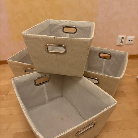 Kolme mustaa kangaskoria. Yhteishintaan 5 euroa Hyvä siisti kunto, käytetty vaatteiden säilytykseen. Tarrakiinnitys, menevät kokoon. 20 (korkeus) × 27 × 32. Savuton eläimetön koti. Vain nouto.