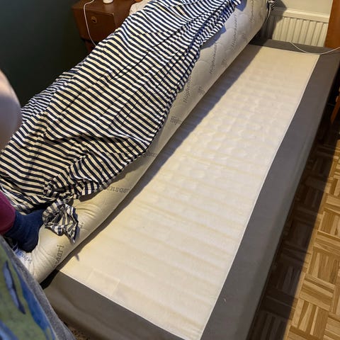 Pohjan säleikössä siniset ovat vahvempia ja joustamattomampia, tupla säleet kaikista vahvimpia ja tulevat esimerkiksi lantion kohdalle sängyssä. Niitä irtoilee välillä ja joutuu laittamaan takaisin kiinni. Patja on melko jämäkkä. Sijauspatjassa yksittäisiä tahroja. Mukana useampi ylimääräinen säle.