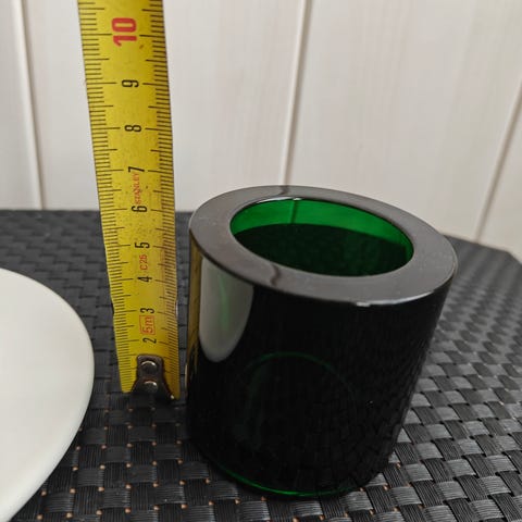 Tornio Finland tuikkukippo. Sinisävyinen, läpikuultava lasi, jossa valkoisia yksityiskohtia. Muoto on orgaaninen, aaltoilevin reunoihin nousevin kärjin. Korkeus on mittakuvan perusteella noin 7–8 cm. Sopii esimerkiksi pienenä koriste-esineenä, tuikkukupiksi tai pienten esineiden säilytykseen.