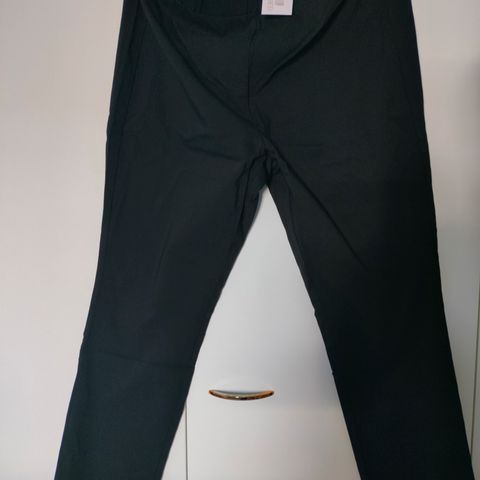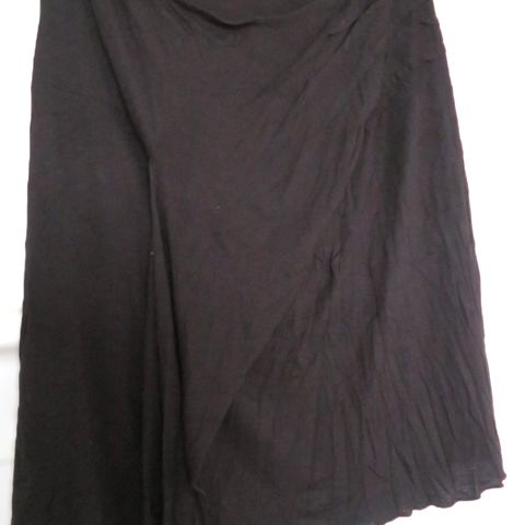Musta viisitasku hame. Vetoketjullinen sepalus. Hameessa on sisäpuolella napillinen kuminauha, jolla hameen vyötärön leveyttä voi kiristää sisäpuolelta, jolloin hameen kanssa ei välttämättä tarvitse käyttää vyötä.