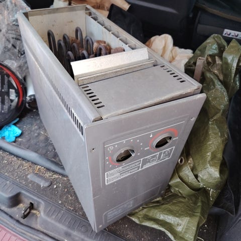 Annetaan sähkökiuas, joka ollut edellisellä asukkaalla käytössä ja toiminnassa. Nyt tarpeeton.
