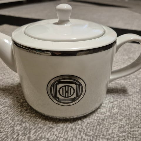 Valkoinen,posliininen teekannu sihdillä hyvässä kunnossa ranskalaisen Pilliviuy-posliinitehtaan valmistama. Korkeus 13 cm,leveys nokasta ottimeen 20 cm.