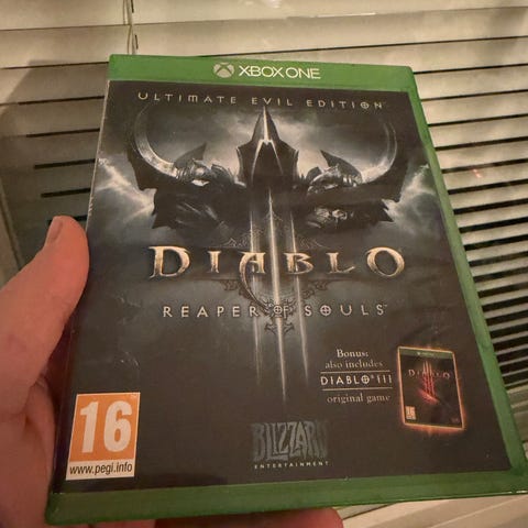 Blizzard Diablo III Reaper of Souls Ultimate Evil Edition Xbox One -peli. Fyysinen levypainos Xbox One -konsolille. Ikäraja PEGI 16. Pakkaus sisältää pelilevyn kotelossa. Genreltään toimintaroolipeli, jossa yhdistyvät kampanjapeli ja moninpelimahdollisuudet Xbox Onella.