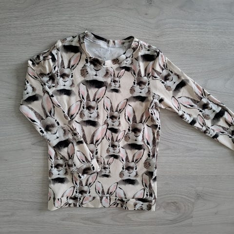 Metsolan joustavasta trikookankaasta itse tehty t-paita. Koko 128. Siistikuntoinen, vähäisellä käytöllä ollut. Yksi ompeleen nousu helmassa, ei vaikuta käyttöön. Nouto tai postitus.