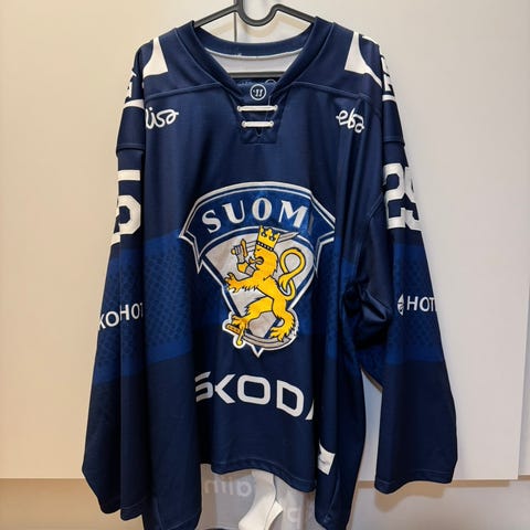 Aito ja käyttämätön Suomen jääkiekkojoukkueen virallinen pelipaita. Täydellinen fanipaita olympiakisoja varten. Koko miellyttävä XL ja sen myötä hieman väljä, sopii kaikenkokoisille. Koon myötä voi käyttää myös esim. pipolätkässä, koska mahtuu takin päälle.