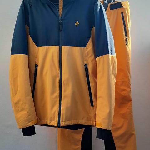 Takki on merkiltään Quicksilver ja siinä on 10000mm kalvo. Housut on Firefly-merkkiset ja niissä on 5000mm vedenhylkivyys.