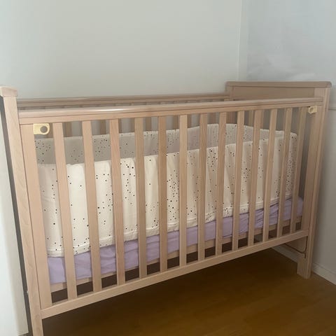 Done by Deer vauvan pinnasängyn reunapehmuste. Vaalea, pilkullinen kuosi.