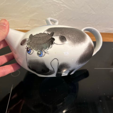 Ei pidä vettä, vuotaa hiukan pohjasaumasta, sopii koristeeksi.