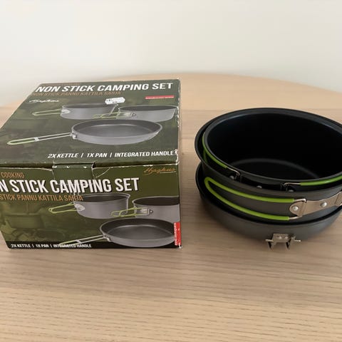 Rocktrail Camping Oven Set retkiuuniastia-setti. Pakkauksessa on useita yhteensopivia osia ruoanlaittoon retkikeittimen tai muun lämmönlähteen päällä. Settiin kuuluu kannellinen uunivuoka sekä muita astioita, joita voi käyttää esimerkiksi paistamiseen ja hauduttamiseen. Soveltuu leiriytymiseen ja retkikäyttöön.