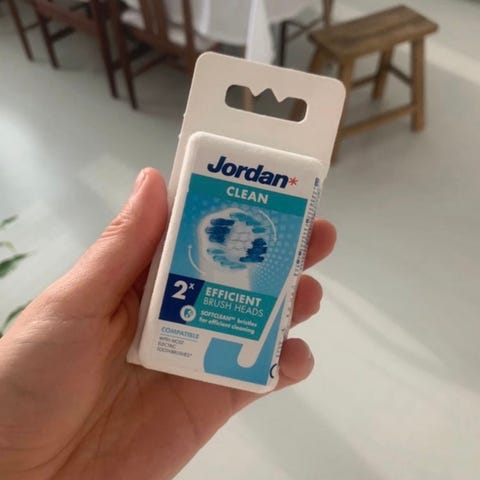 Jordan Clean Brush SoftClean vaihtoharjat sähköhammasharjaan, pakkaus sisältää 4 harjapäätä.