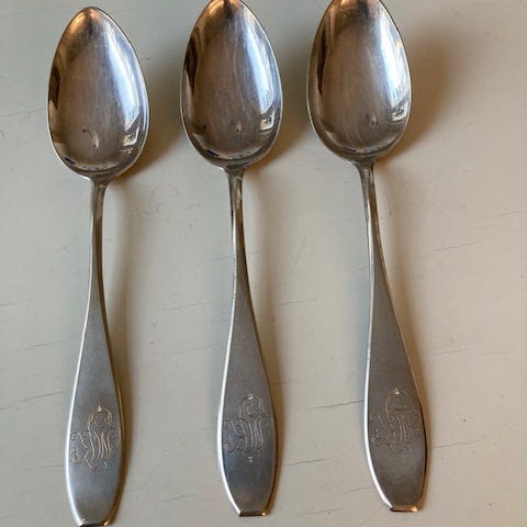 painavia antiikki ruokalusikoita 4 kpl, painava antiikki lusikkaotin