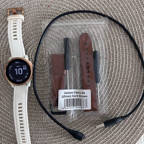 Fenix 7 : mukaan latausjohto, alkuperäinen hihna ja pari kiinan hihnaa.