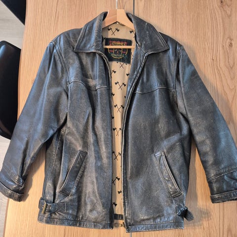 Hyväkuntoinen M kokoinen nahkatakki. Selässä pieni reikä, nuotiosta varmaan lentänyt kipinä.