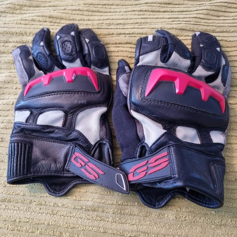 Erittäin vähän käytetyt BMW GS Dry moottoripyörähanskat. Liki uudenveroiset. Omaan käteen vain vähän turhan pienet. Kokolappu leikattu irti, Koko arviolta M /
