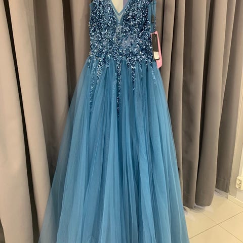 Zazabella ilta- tai juhlapuku naisille. Koko S. Mekko on sininen ja valmistettu kevyestä sifongista. Yläosa on istuva ja olkaimellinen, alaosa monikerroksinen ja runsas. Sopii esimerkiksi juhliin, vanhojentansseihin tai muihin iltatilaisuuksiin.