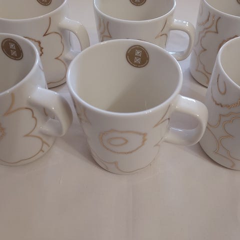 Myydään käyttämättömät Piirto Unikko kulhot, väri valkoinen-kulta ja valkoinen-punainen,