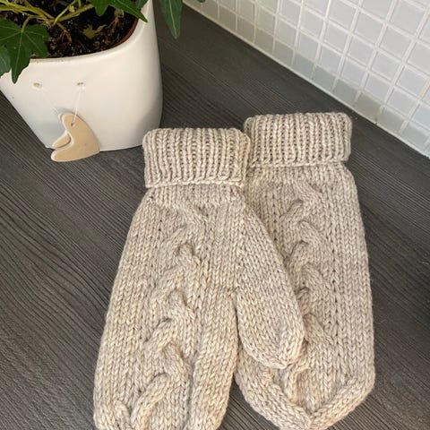 Naisen tai nuoren henkilön käteen sopivat, itse tehdyt, lapaset.