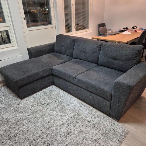 Myydään tummanharmaa kulmasohva