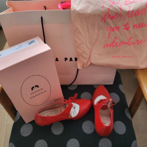 Minna Parikan suunnittelemat Lipstick korkokengät. Koko 40. Herkullinen huuliyksityiskohta on mokkanahkaa.