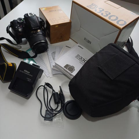 Hyvin vähän käytetty Nikon d3300 järkkäri. Shutter count alle 2000, päivitän tänne kun tarkistan. Muistikorttia ei tule mukaan.