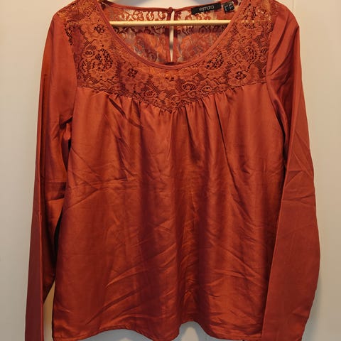 Esmara pusero, naisten koko M. Väri punainen. Materiaali puuvillaa. Pitkähihainen malli, jossa kaulus ja V-mallinen halkio pääntiellä. Sopii arkipukeutumiseen ja kerrospukeutumiseen.