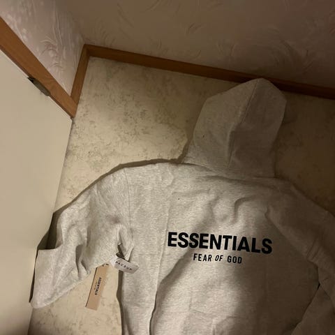 Essentials huppari miehille, koko XS. Väri harmaa. Materiaalina pääosin puuvilla sekoitteella, jossa mukana polyesteriä (materiaalitiedon mukaan 80 % puuvillaa ja 20 % polyesteriä). Edessä pieni Essentials Fear of God -teksti ja hupussa sekä niskassa logomerkinnät. Hupullinen malli, jossa pitkät hihat ja resorit hihansuissa ja helmassa. Soveltuu arkikäyttöön ja kerrospukeutumiseen.