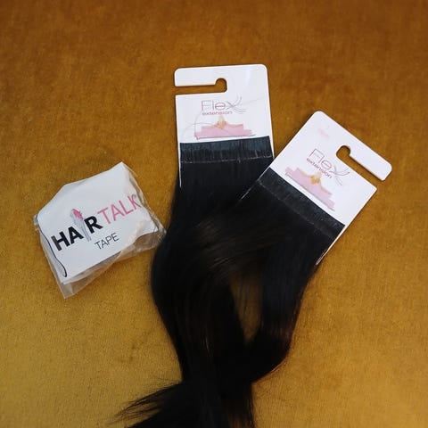 Sekalaista teippihiusta vaikka tuuhennokseen. Pituus voi hieman vaihdella 40-43cm. En tiedä minkä merkin hiusta. 12 vastaparia.