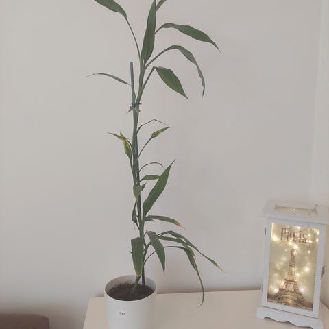 Myydään noin 2,4 metrin mittainen "onnenbambu" viherkasvi keramiikkaruukussa. Kasvi on yli 20 vuotta vanha ja sitä on jouduttu muutamaan kertaan lyhentämään latvasta (eli meidän kokemuksen mukaan lyhentäminen onnistuu hyvin). Kasvin korkeus on lähelle kattoa, noin 240cm. Kasvissa on tukikeppi, mutta kasvin luonteesta johtuen kuljetus saattaa olla haastavaa, mahdollisesti joutuu lyhentämään, ettei katkea.