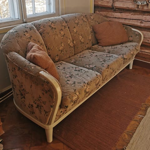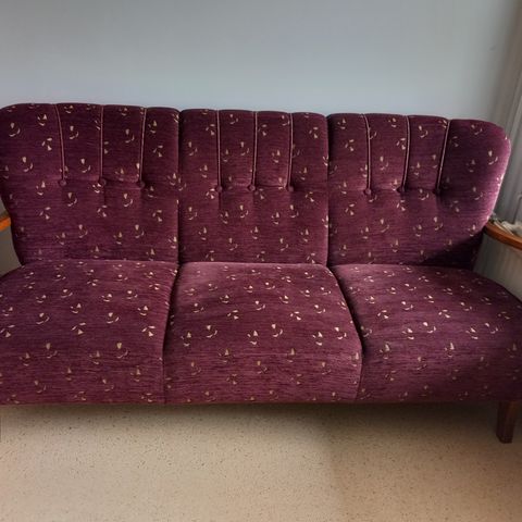 Punainen vakosametti sohva. Priimakunnossa ja erittäin mukava istua.