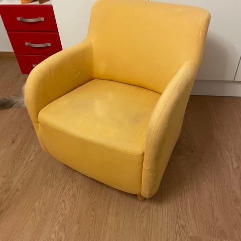 Pieni ja siro tuoli , kulumaa mutta pääosin siisti. Kissakoti.