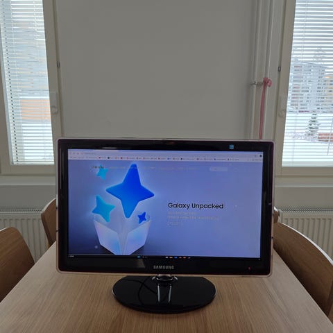 Hyväkuntoinen näyttö käyttämättömänä, jota voi käyttää myös televisiona.