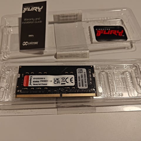 Kingston Fury Renegade DDR4 RAM-muisti, kokonaiskapasiteetti 16 GB (2 x 8 GB). Kellotaajuus 3600 MHz.