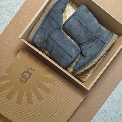 Myynissä Ugg aidot kenkiä. Ehjät ja lämmit, mutta on tahrat, kuvassa näkyy, onnistu poistamaan värillä.