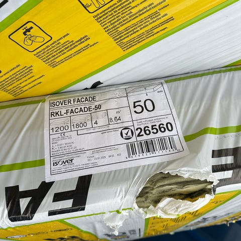 Tuulensuoja Gyproc GTS 9 1200x2660. Kuusi kokonaista levyä ja yksi, josta leikattu pala. Reunassa kolhua, josta kuva. Nouto Espoon Niipperistä.