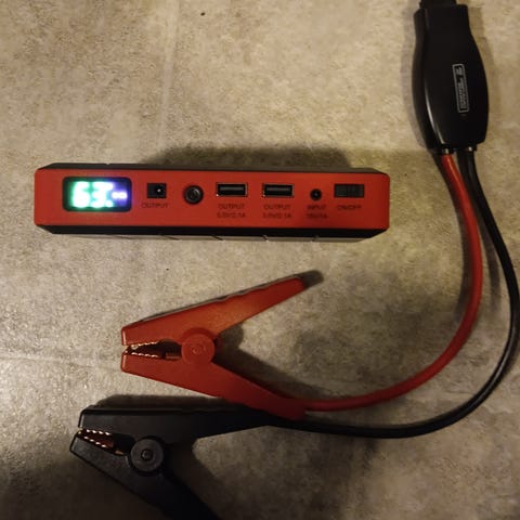 Apukäynnistin Biltemasta ostettu, kerran auto käynnistetty.Taskulamppu, lataus pistoke.
