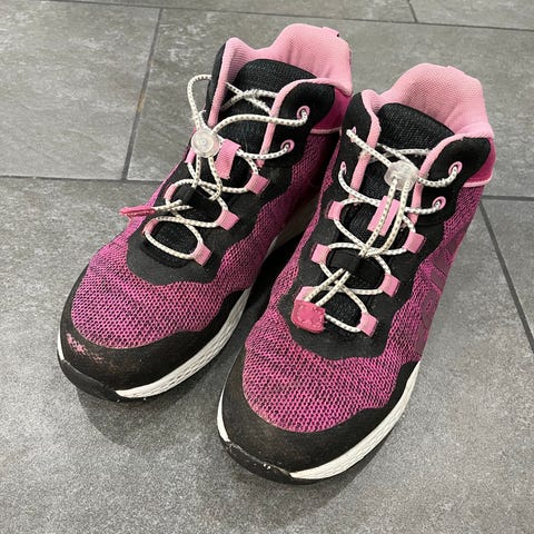 Reima lasten kengät, koko 39. Unisex-malli, sopii sekä tytöille että pojille. Väriltään punaiset. Kengissä on korkea varsi ja nauhakiinnitys. Sisäpuoli vaikuttaa pehmeältä ja lämpimältä, mikä tekee kengistä soveltuvat viileämpiin keleihin. Ulkopohja on kuvioitu paremman pidon takaamiseksi.