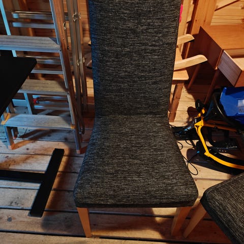 Uusien tieltä pois. Tuolit Ikean LEIFARNE mallia, vanhemmat mutta hyväkuntoiset. Istuintyynyt Ikean VATTENMOTT mallia, alle kuukausi sitten ostettu hintaan 7,99€/kpl.