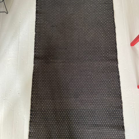 Käytössä ollut ja hieman jo auringossa haalistunut raanu, koko näkyy kuvissa raanu asennettuna sisäoven päälle.