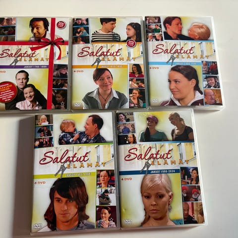 Salatut elämät DVD-boksit, useita levyjä suomalaisesta televisiosarjasta. Jaksot 1-180, 1765-2079. Hyvä kokonaisuus sarjan jaksojen katseluun ja kokoelman täydentämiseen.