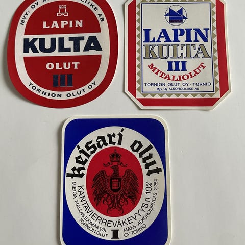 Kuvan vanha käyttämätön Keisari Olut -etiketti. Tornion Olut Oy.