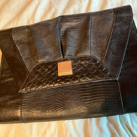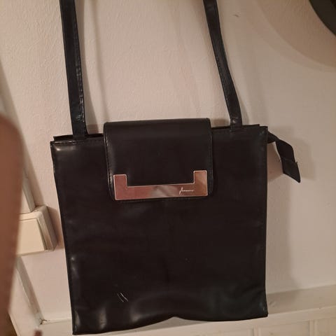 olkalaukku naisille. Musta tekonahkainen laukku, jossa tikattu pinta ja kullanväriset niittikoristeet. Laukussa on kullanvärinen ketjuhihna olalla tai crossbody-käytössä pidettäväksi. Suljenta läpällä ja magneettinepparilla. Sopii arki- ja juhlakäyttöön pienenä käsilaukkuna tai iltalaukkuna.