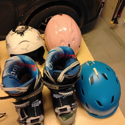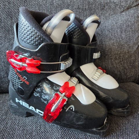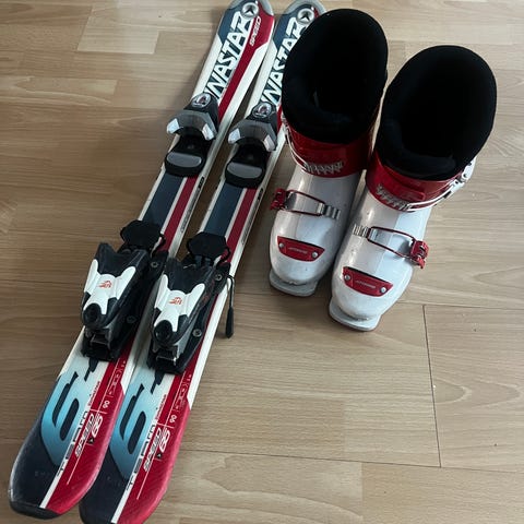 Elan Hyper X juniorisukset ja Head Carve X -monot. Sukset on varustettu siteillä, jotka sopivat mukana oleviin monoon. Monot ovat mustat, joissa on punaiset soljet. Kokomerkintä näkyy pohjassa.