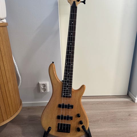 Vanha bassokitara, joka on lojunut varastossa. kaulamekanismin säätömutteri on rikki, kaikki muu toimii. On varmasti korjattavissa, mutta itsellä ei ole aikaa ja energiaa korjata.