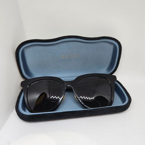 Myydään halvalla aidot tummansiniset Marc Jacobs merkkiset aurinkolasit ja Gucci kotelo