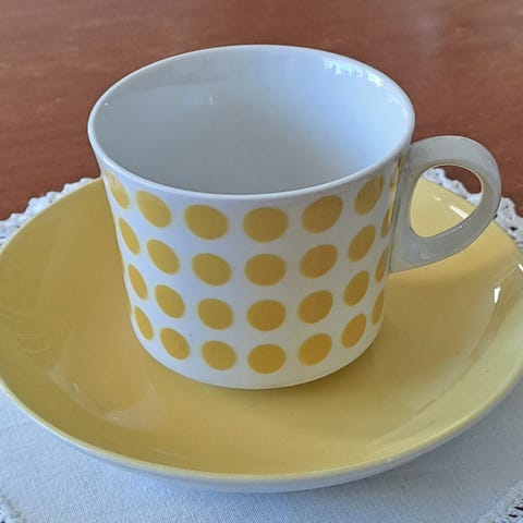 Arabian puhalliskuppi Lehvä. Erittäin hyvässä lasituksessa. Savuton ja kotieläimetön talous. Löytyy myös muita kuppeja.