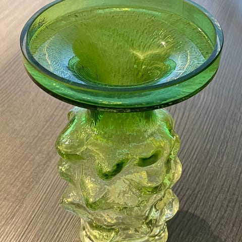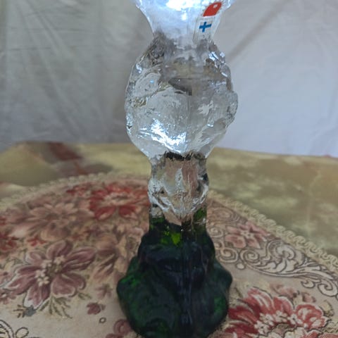 Vihreä pohjainen Humppilan lasin kynttilänjalka korkeus 21cm