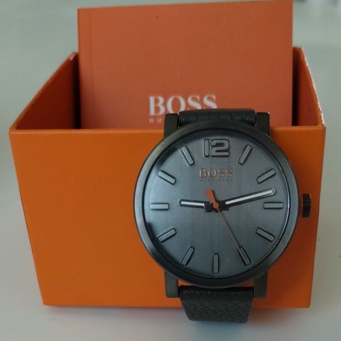 Hugo Boss Orange rannekello, juuri patteri vaihdettu ja mukaan alkuperäinen kotelo. Lasissa pieni jälki, näkyy kuvissa jos tarkkaan katsoo, ei haittaa käytössä.