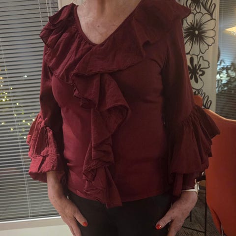 Puuvillasta valmistettu 3/4 hihalla. Levenevä helma, nappilista ylhäällä.