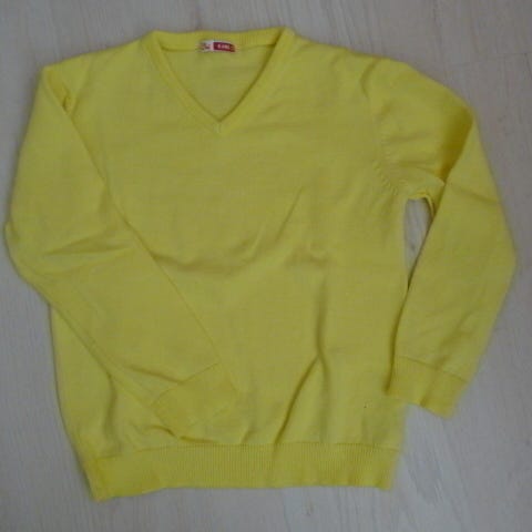 Ranskalainen käyttämättä jäänyt sinapinkeltainen paksu kukkakuvioinen neule. Merkki Louise Misha. Koko 6y (ranskalainen mitoitus)