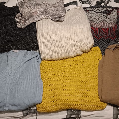 Calvin Klein naisten huppari, koko XL. Väri vaaleanpunainen, käyttänyt oversize mekkona. 2 mustaa neuletakkia, oversize myös lyhyenä mekkona, toisessa napit, toisessa olen käyttänyt vyötä. Sininen meleerattu kuosi ja yksi pitkä tunika/mekko. Kaikki joustaa ja sekoitenatetiaalia. L/XXL, riippuu kuinka tyköistuva/löysän haluaa. Tässä mukavuus, helppous ja trendit kohtaavat! Saa myös hakea! Vain pakettina, kaappien tyhjennystä! Yht. 15€ ja PK